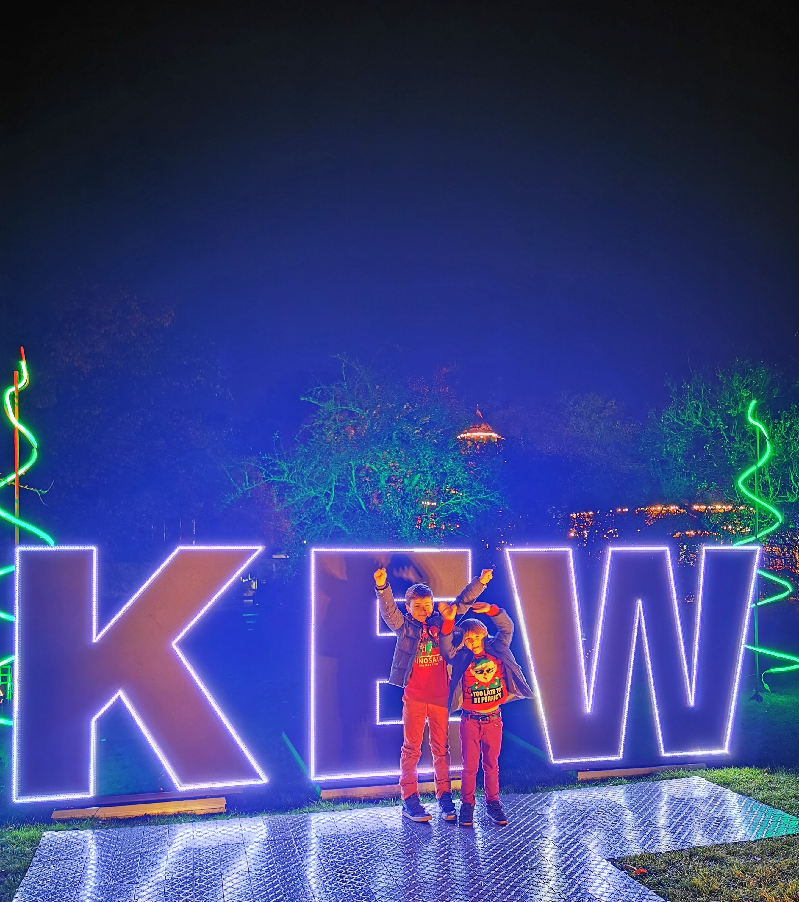 Traditionally Kew Gardens Christmas trail ends by the iconic Palm House pond with laser beams, dancing fountains and flickering orbs by Christmas classics. Silent night brings tears to the eyes and transports to childhood magic, whilst the kids are overjoyed and very tired.
