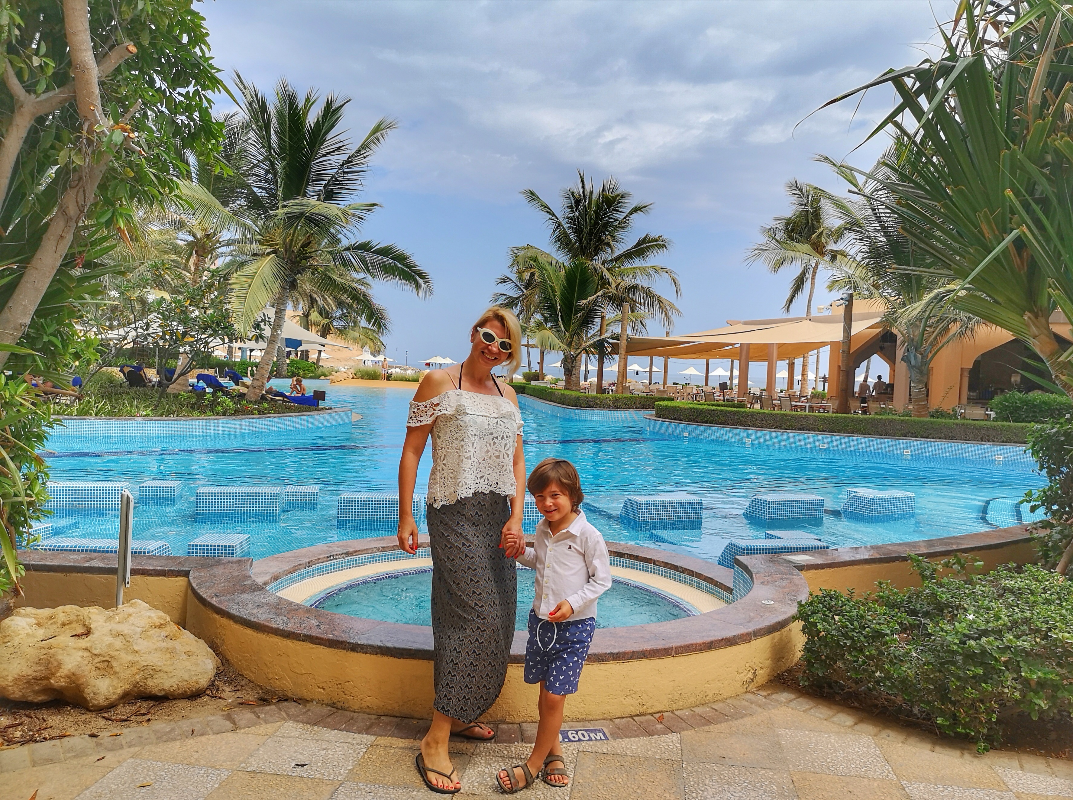 We stayed at Al Bandar in a large beautiful room with views over green gardens and Arabian Sea, indulging into daily rides on the lazy river, the array of cool swimming pools and the beautiful beach.