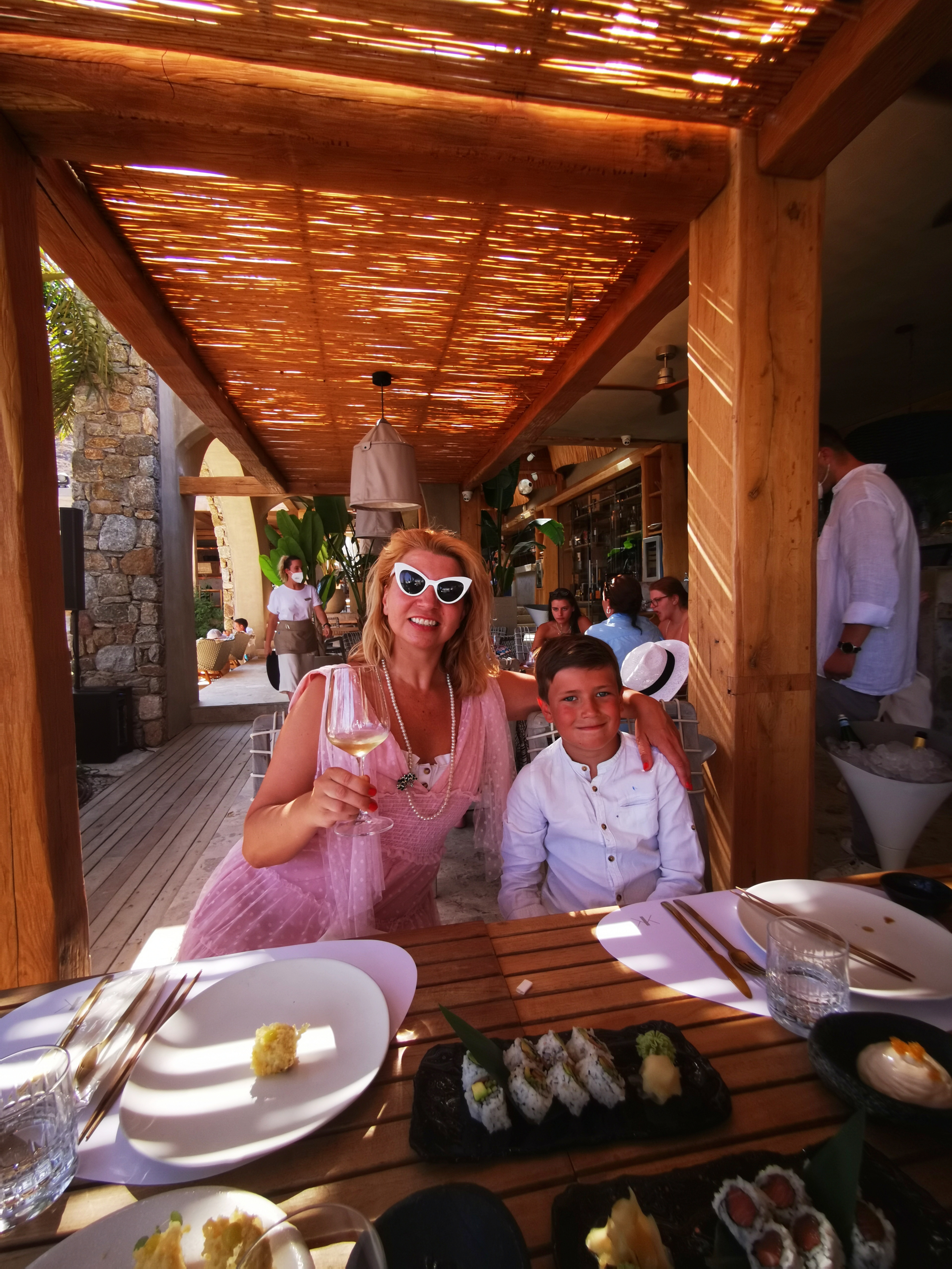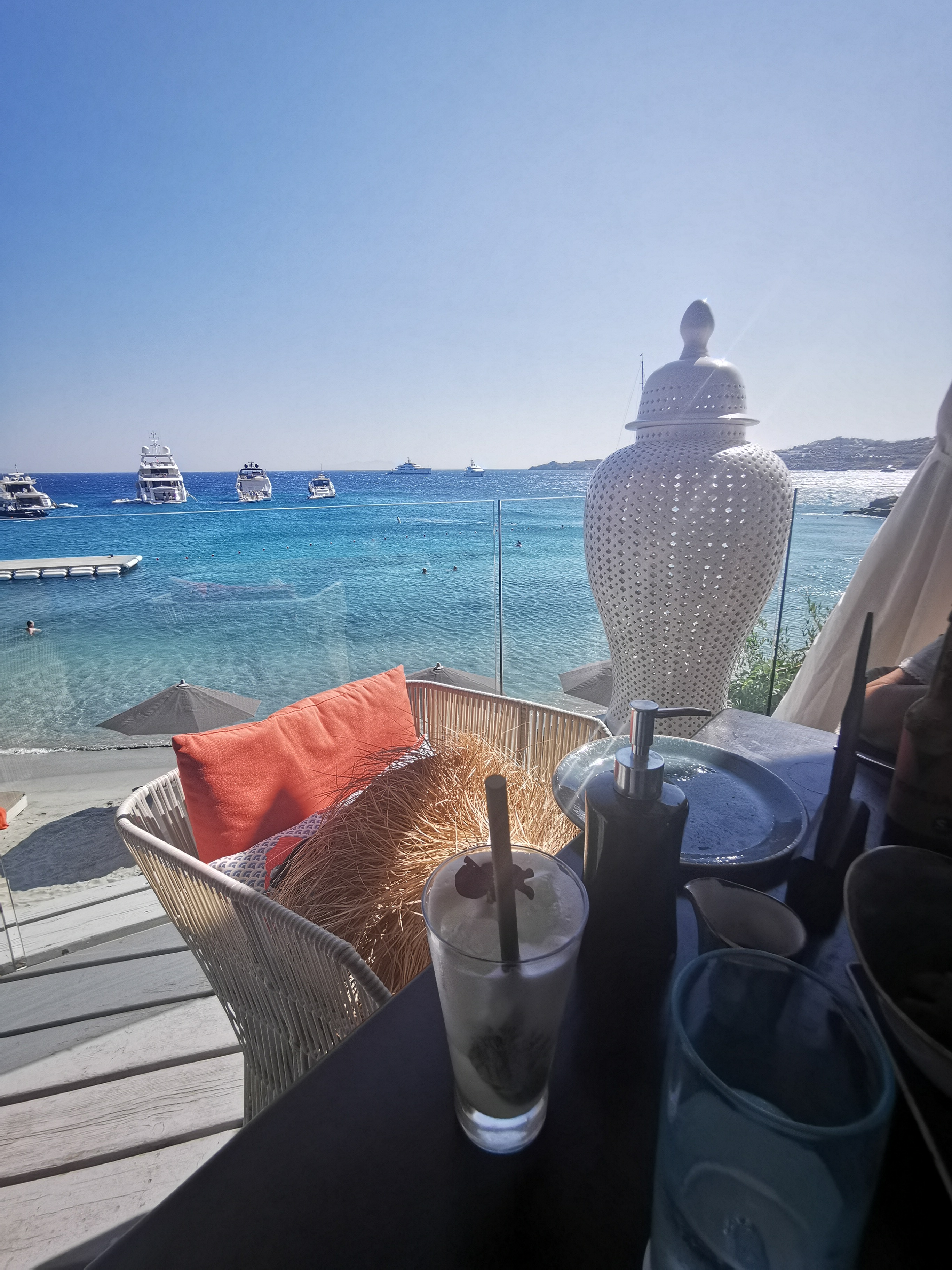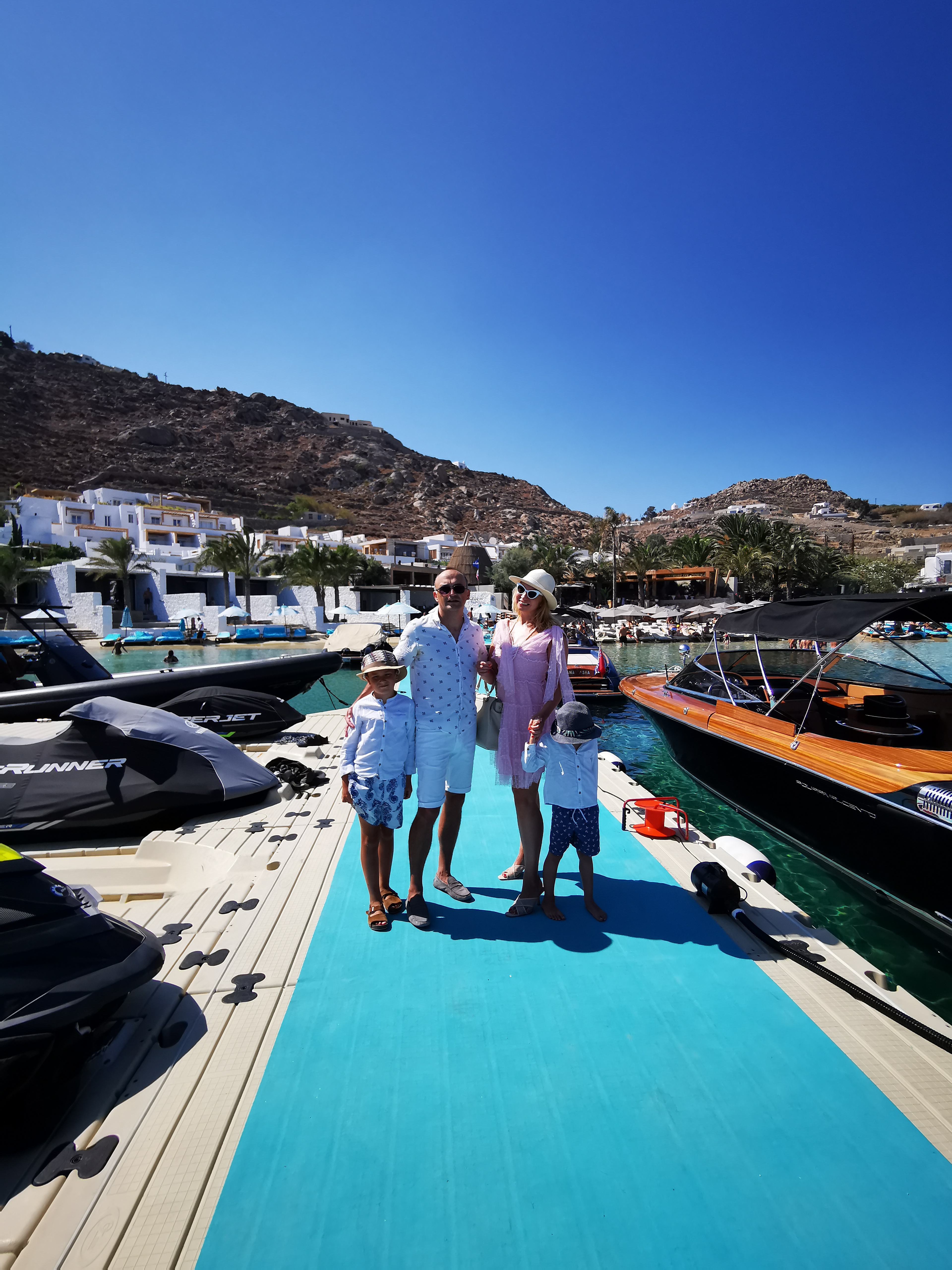 1. Nammos lunches and joyous beach parties, the best way to travel from Ornos is a boat ride: it’s scenic, not far from the cost of a car transfer and very cool. Alec Monopoly happened to have his launch party so the scene was even more vibrant than usual, fireworks, even more champagne and more DJs by Nammos luxury shopping village. We sent off the kids with their grandma back to the villa in style – boat, DJs and dancing all parties for another crazy afternoon!