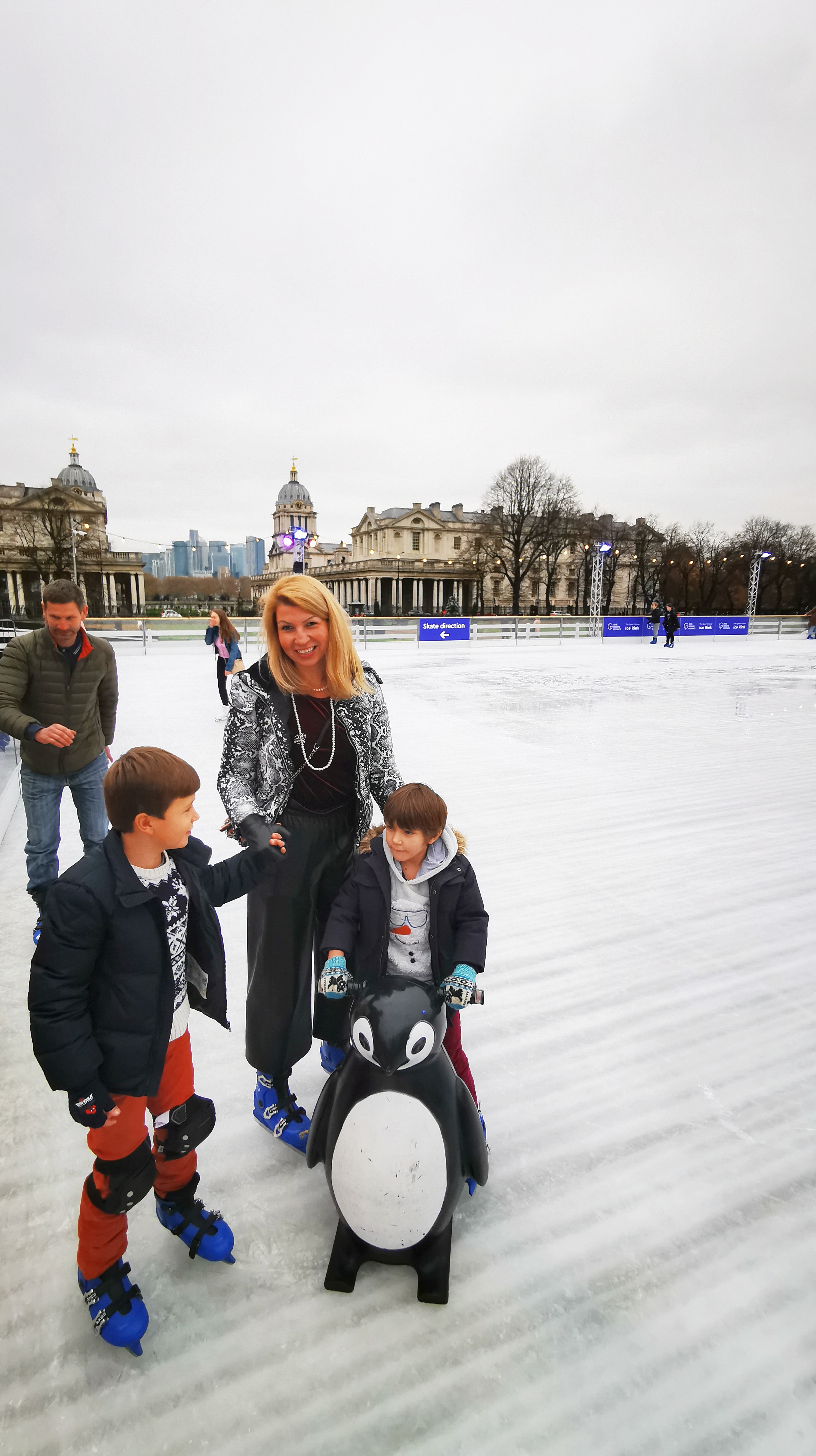 The 8 years old adored wizzing around with my hand, whilst the 5 years old was in great company with a penguin and mostly his father. The music is fun and Queens House Ice Rink size is perfect and far from South Kensington or West end touristy crowds, even Saturday midday slots !