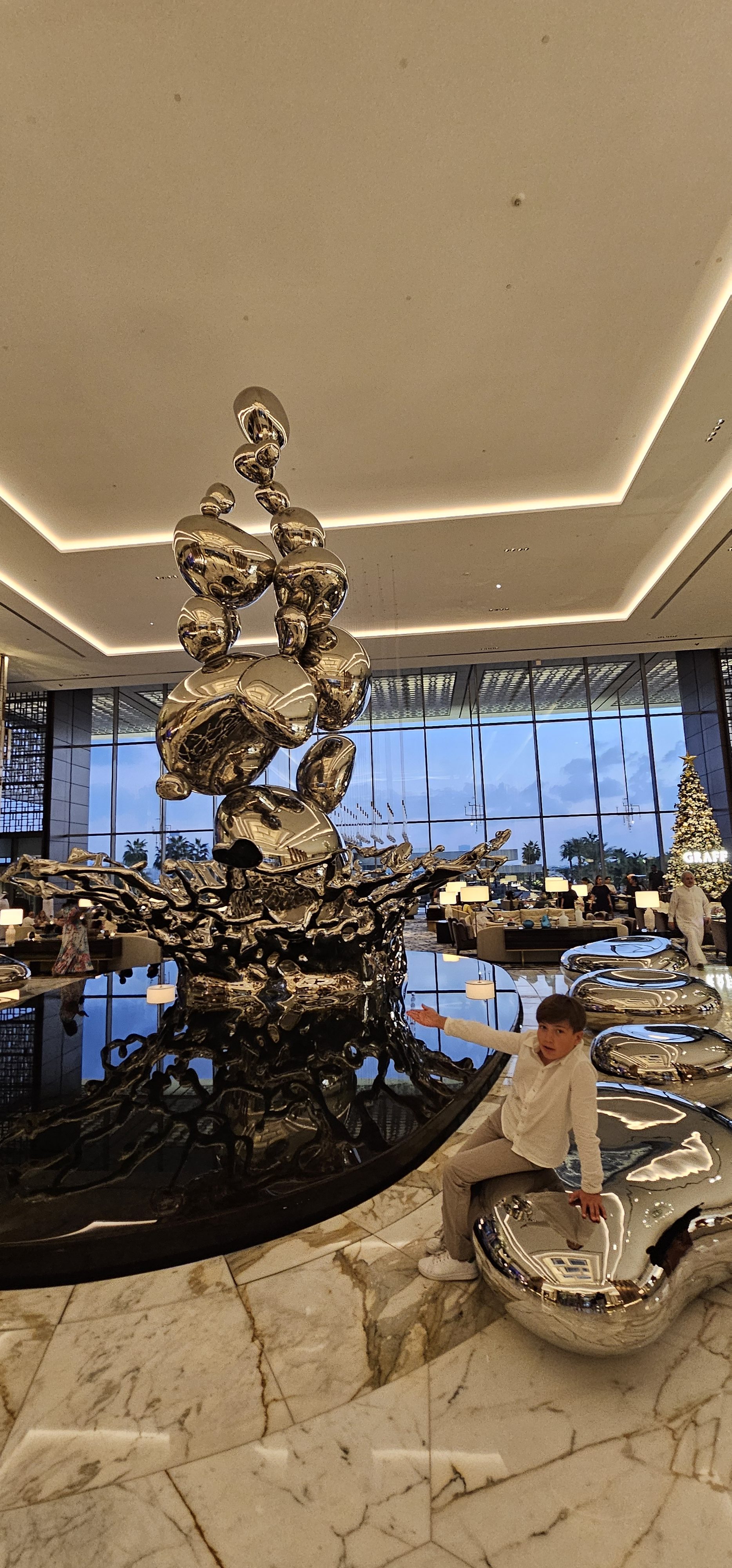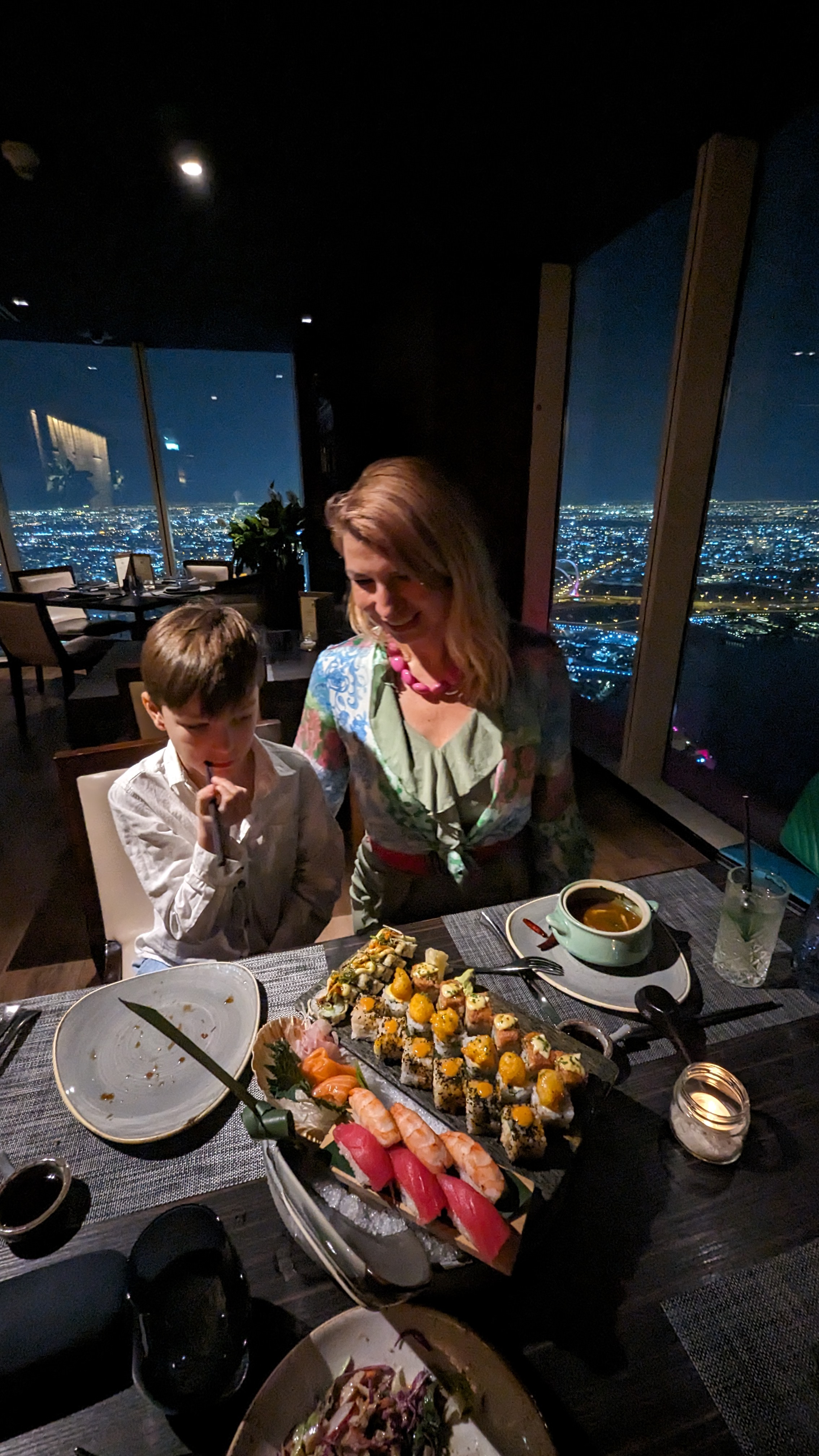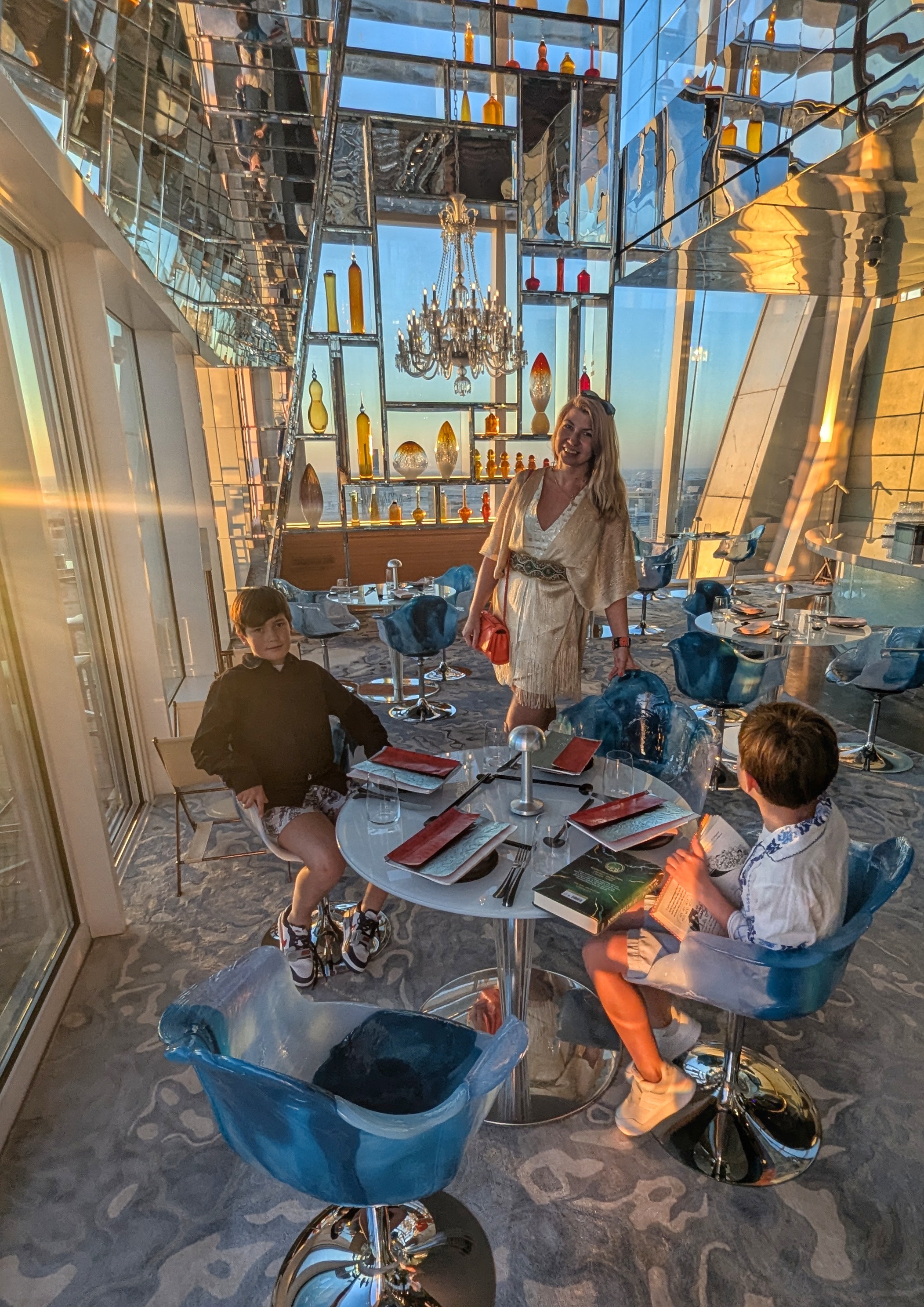 And both Doha and Dubai are fab for foodies: from traditional dishes, to great sushi and finest international cuisines. Doha is slightly more compact than Dubai and with young kids in tow it may be easier to go from vibrant souks selling spices and traditional handicrafts to the beach, to the stunning Museum of Islamic Art or strolling along the Corniche. Dubai has glitz and glamour, buzzing nightlife, shopping malls – one larger than life city that our kids fell in love with and keep asking about going back to. In Doha we indulged into the highest, exquisite sushi at Zengo: 61st and 62nd floor at Kempinski and ended up the evening in extinguished company: an ambassadors reunion, Japan, Nigeria, UK, Indonesia and so much more. In Dubai we have started the year with dinner under the stars at glorious Arabic Ayamna at Atlantis and the night after with Persian cuisine Ariana at Royal Atlantis – dare we say the most glam, artistic hotel we have ever experienced?!